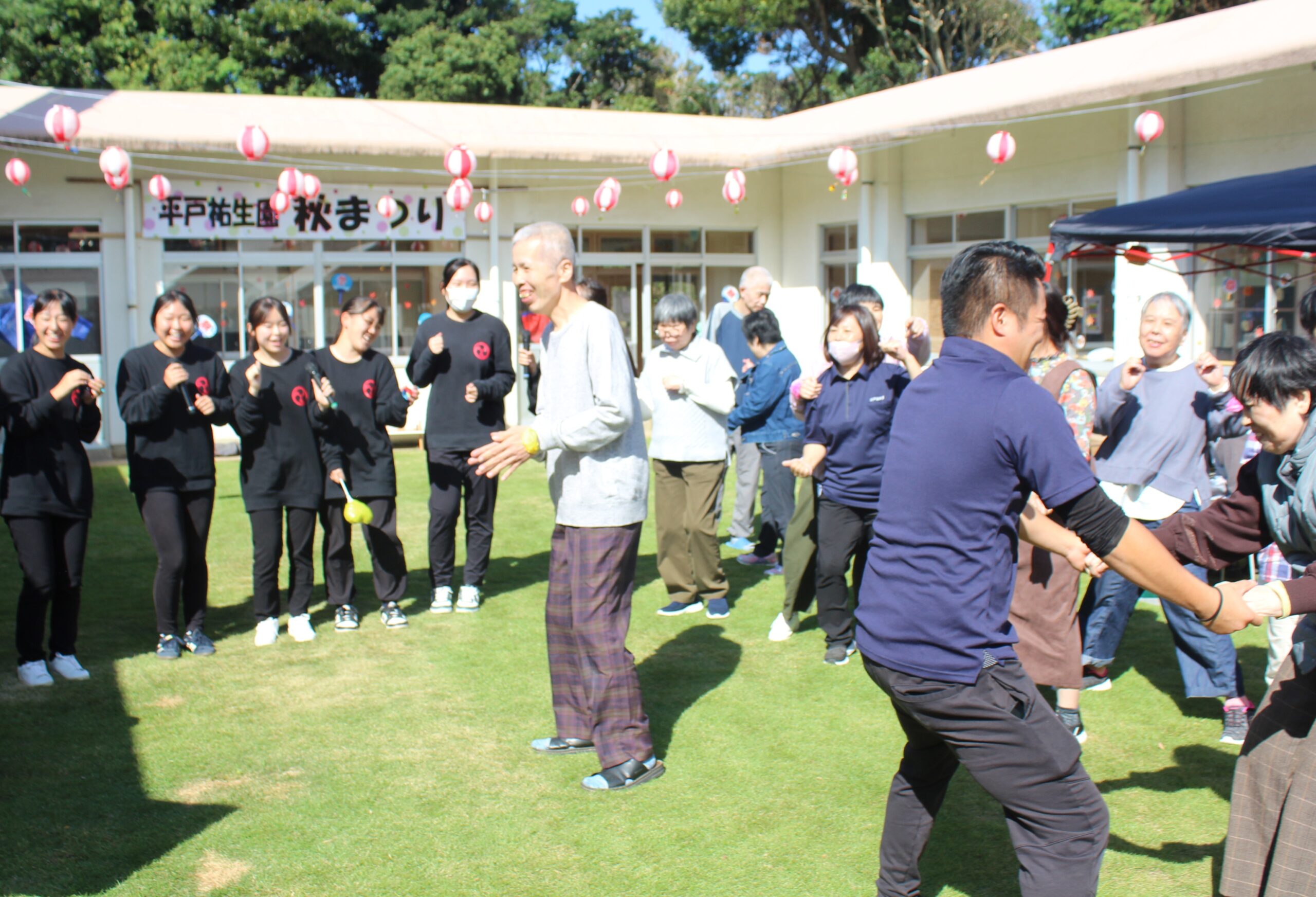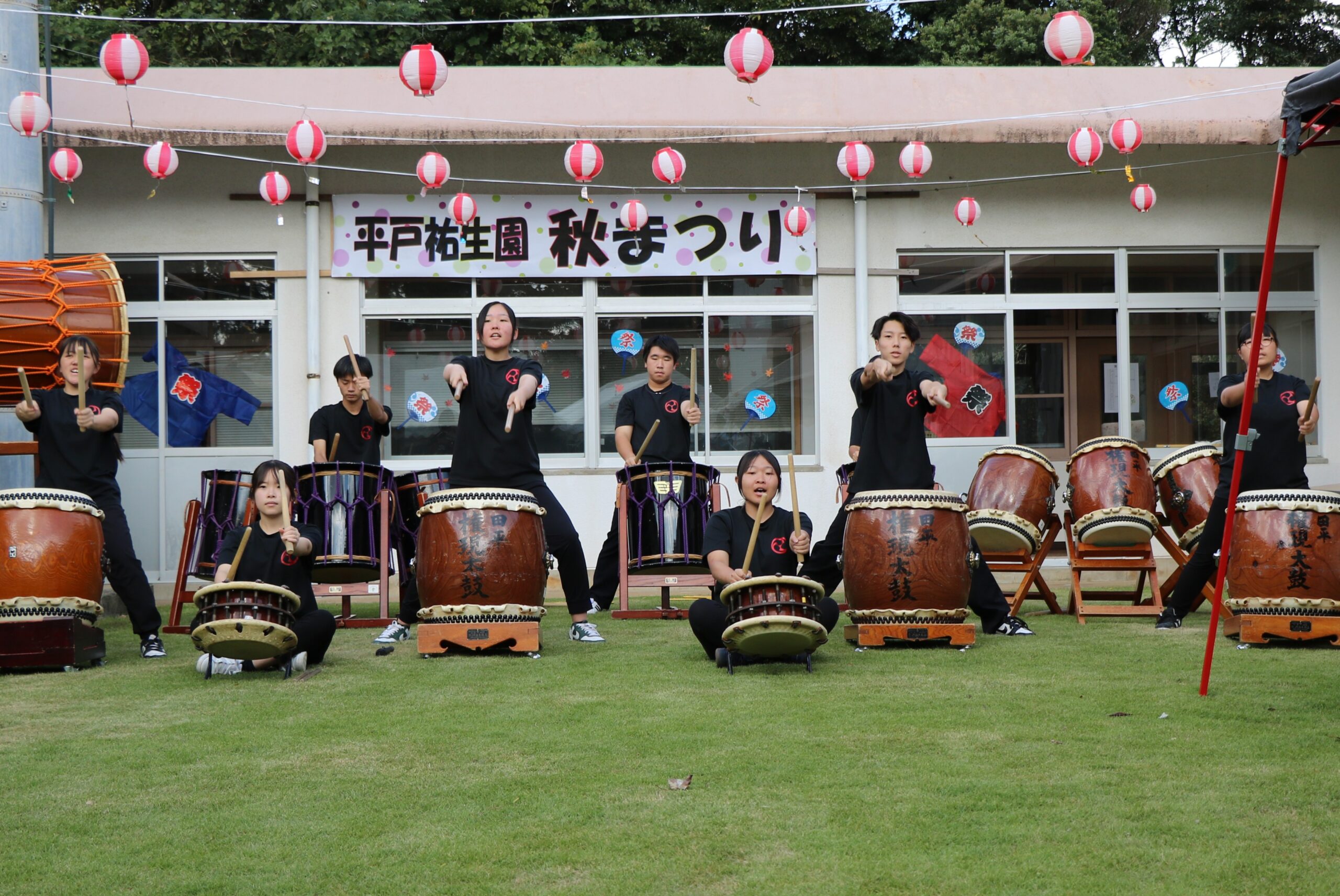 平戸祐生園は今年、地域とのつながりを深めようと、県立北松農業高校と交流を始めました。11月1日、コロナ禍のため7年ぶりに開催した秋祭りに、北松農高「権現太鼓」の出演を依頼したところ、快く引き受けてくださいました。