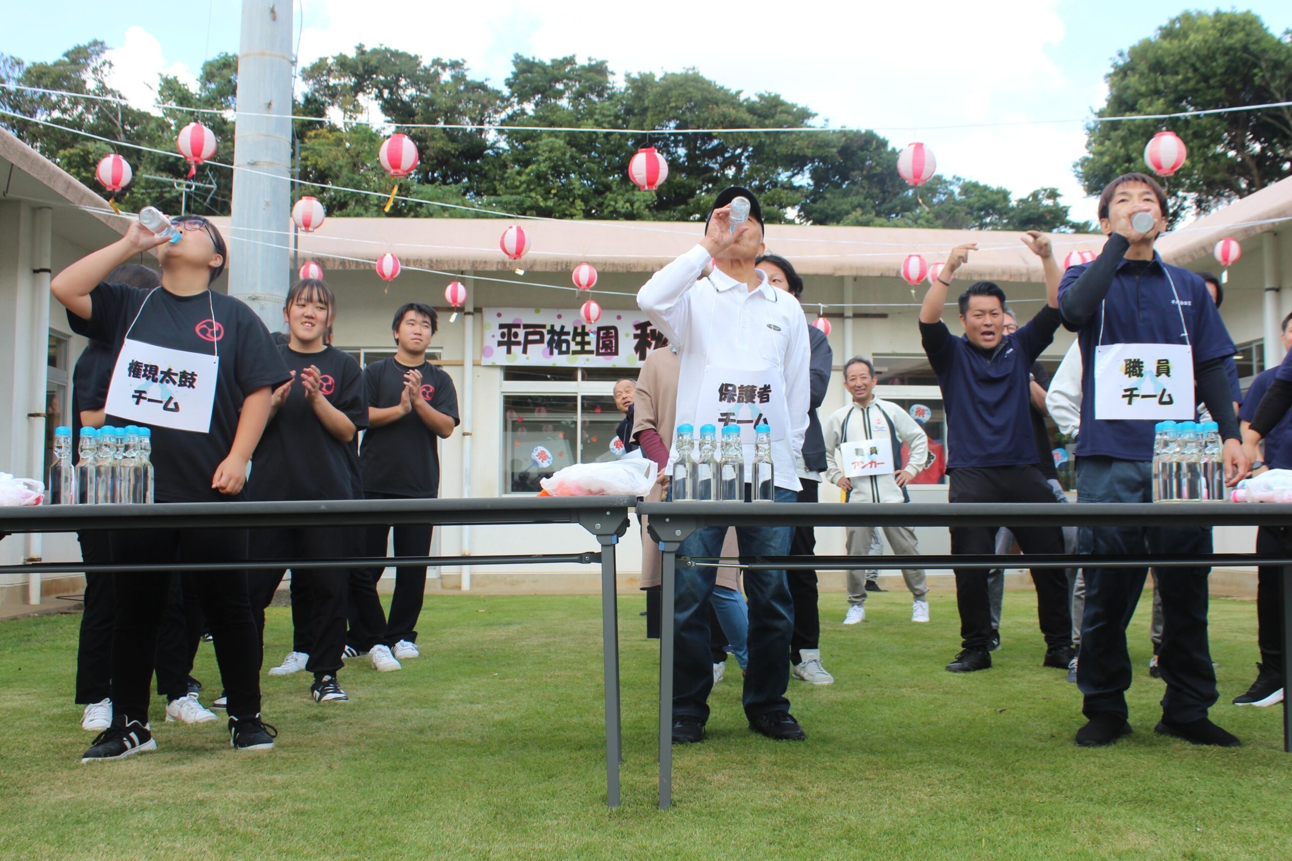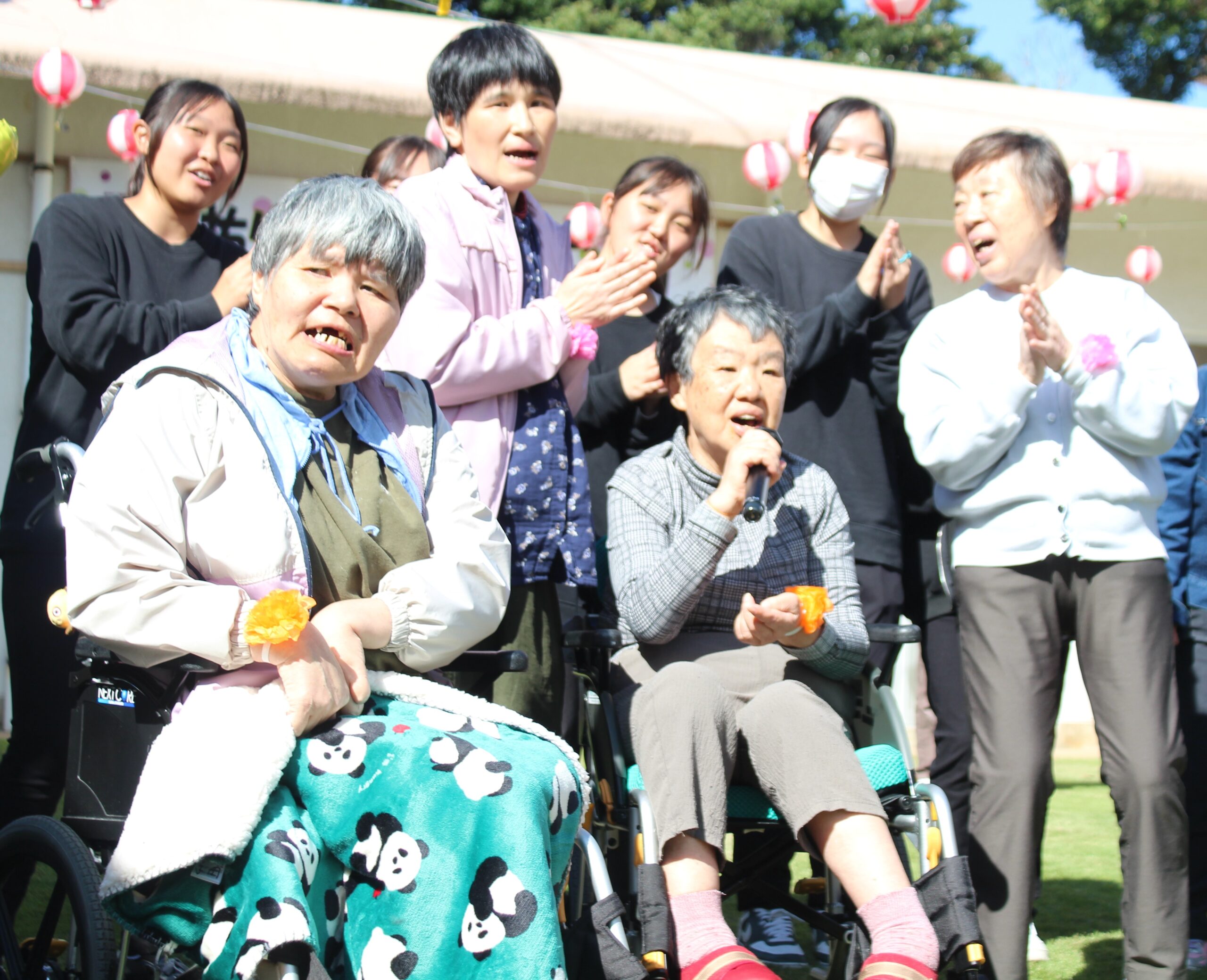 当日は10人の高校生たちが見事な演奏を披露して、利用者様やご家族から大きな拍手がわきおこりました。生徒さんたちは演奏後も、ラムネの早飲み大会や利用者様のカラオケにもすすんで参加、祭りを最後まで盛り上げてくれました。同校は地域のイベントに積極的に出演しており、「地域のために」という強い熱意に胸を打たれました。