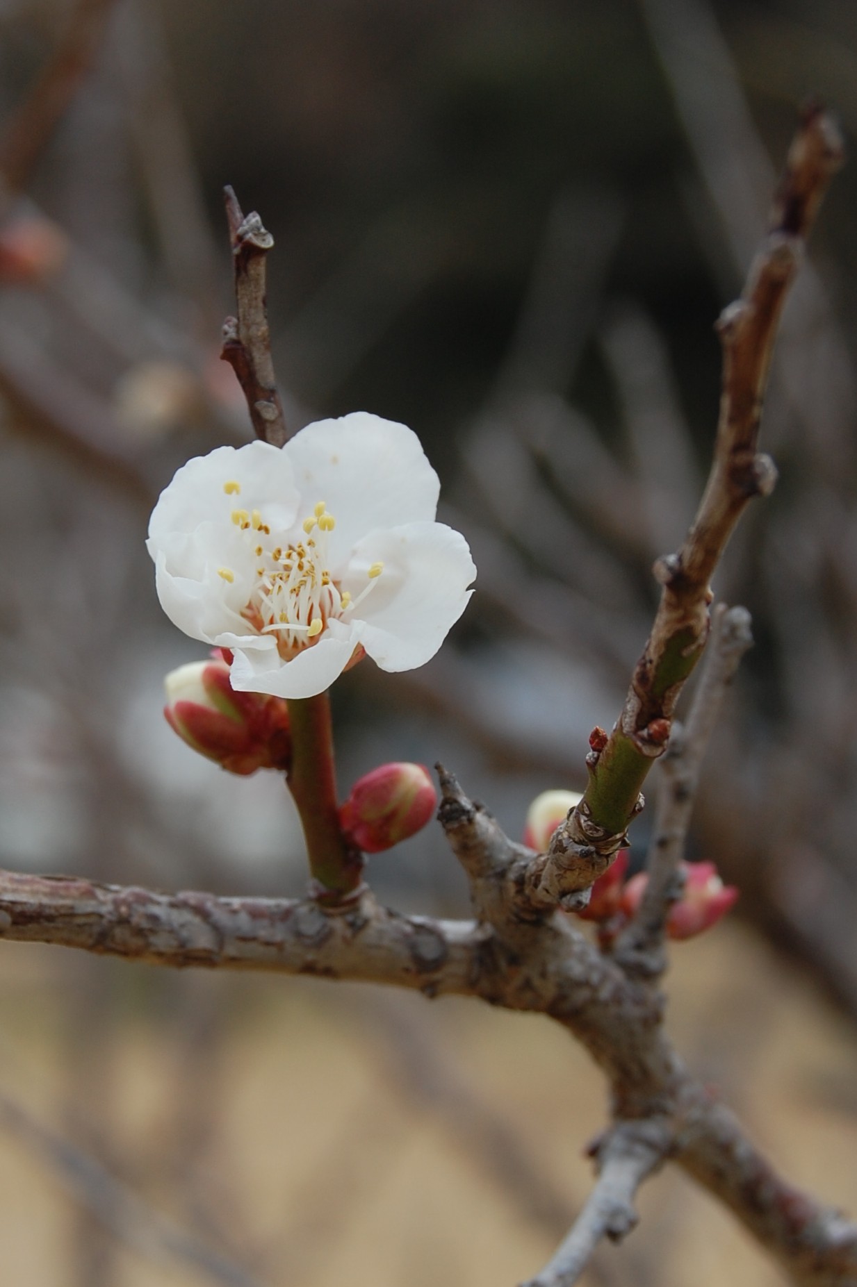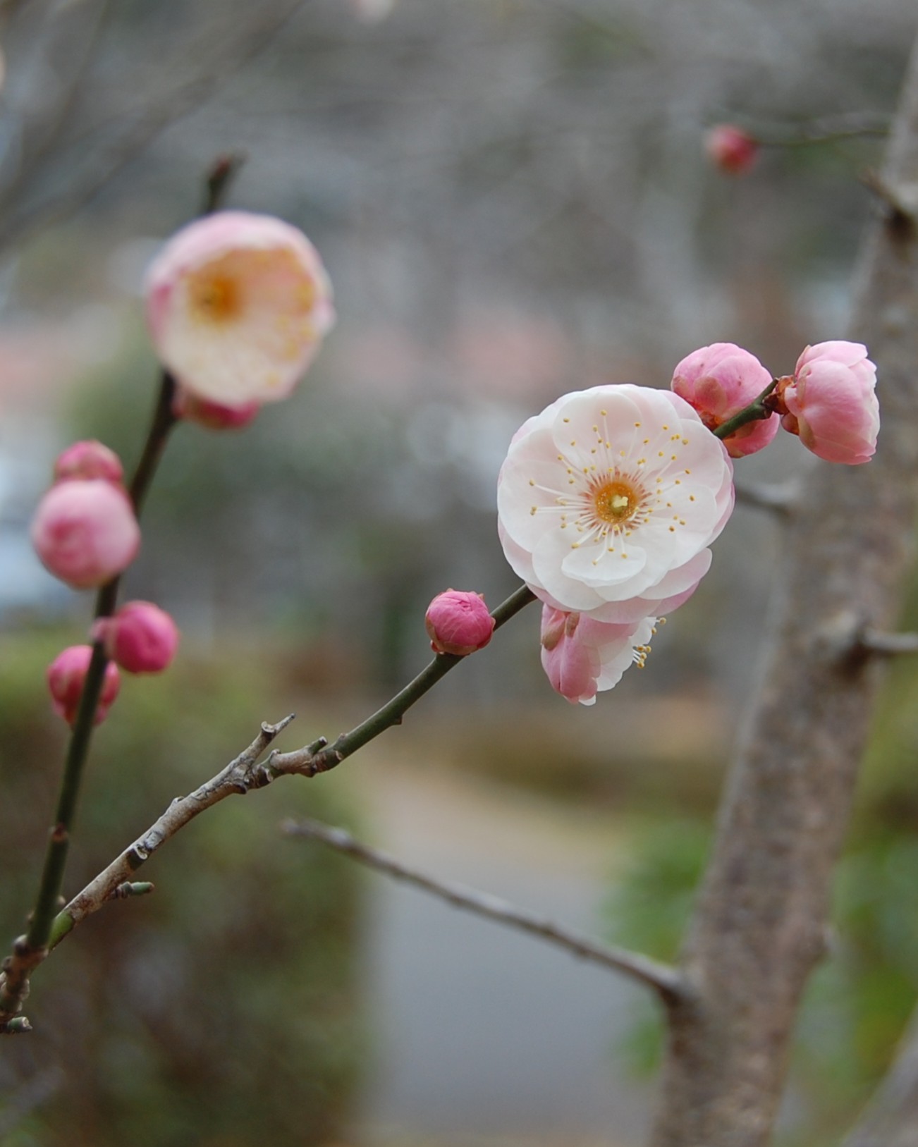 4日は立春。まだ朝晩は寒い日が続いていますが、園内はあちこちで梅が咲いていて春の訪れが近いことを感じさせます。長崎地方気象台によると、今年の梅の開花は1月15日。平年よりも9日早く、昨年より26日早かったそうです。桜はどうかと思って見ると、もう小さなつぼみがついていました。
