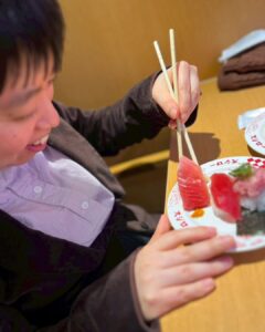 食後は館内でのショッピングを楽しみ、おやつには職員と一緒にドーナツを囲みました。甘い香りに包まれ、お出かけの緊張もほぐれたような、穏やかな時間が流れます。