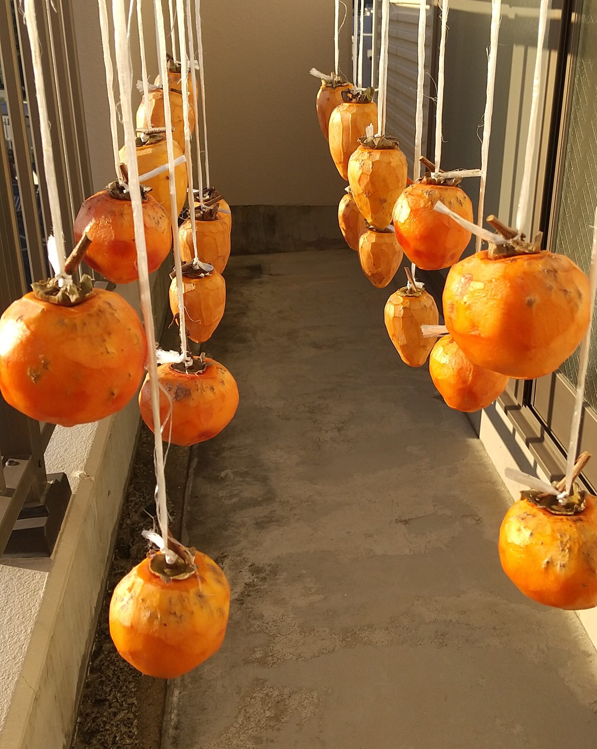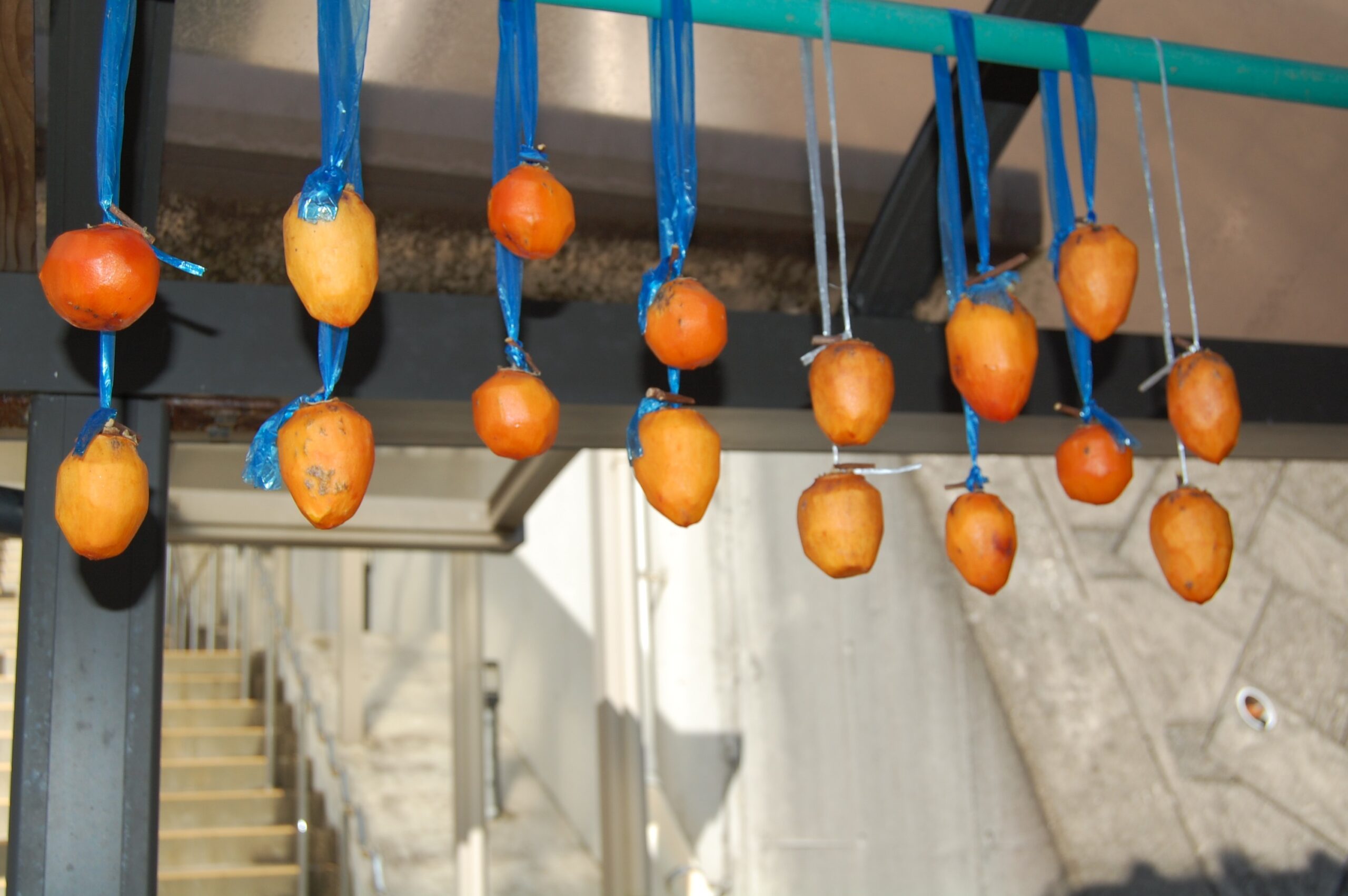 佐世保祐生園に干し柿がお目見えしました。正月飾りに添えるため毎年つるしており、冬の風物詩になっています。