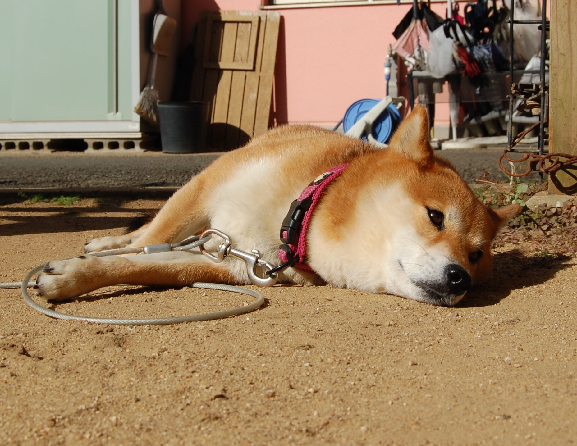 20日は最高気温が16度を超えて、寒さも少しゆるみました。柴犬モモが気持よさそうにひなたぼっこしていました。