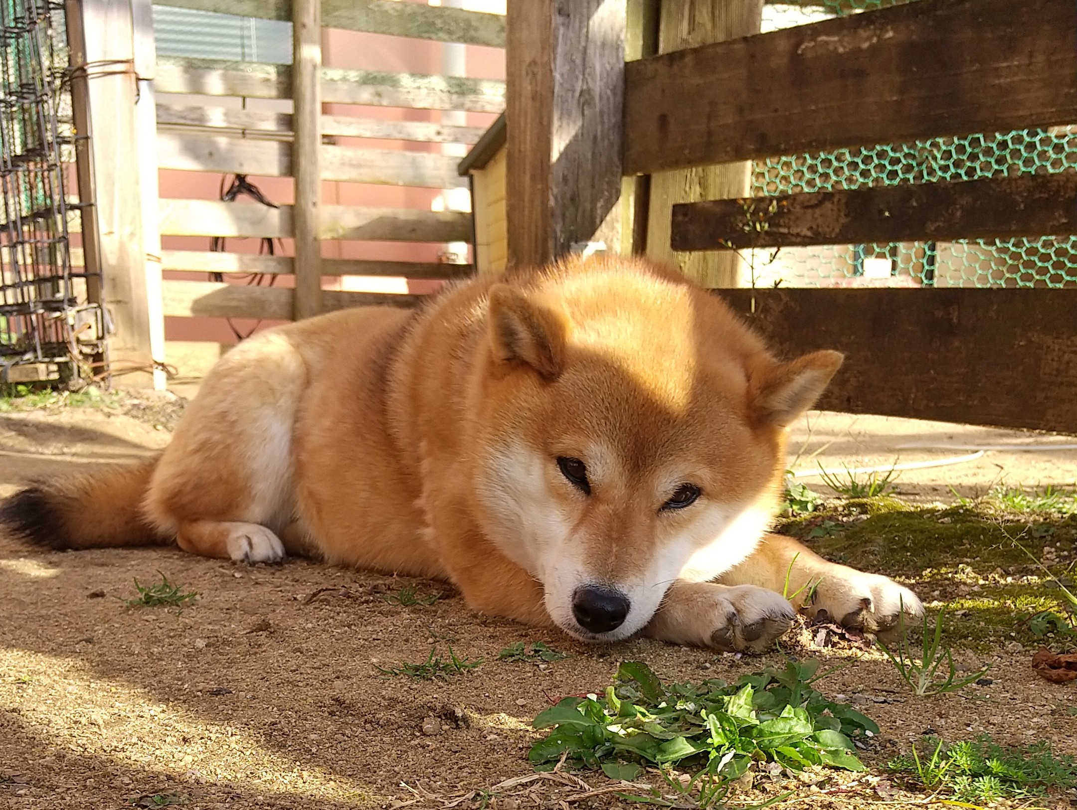 今週はまだ気温の低い日が続いているものの、日の出は少しずつ早くなってきました。寒さもあと少し。梅とロウバイのそばでは、モモが気持ちよさそうにひなたぼっこしていました。