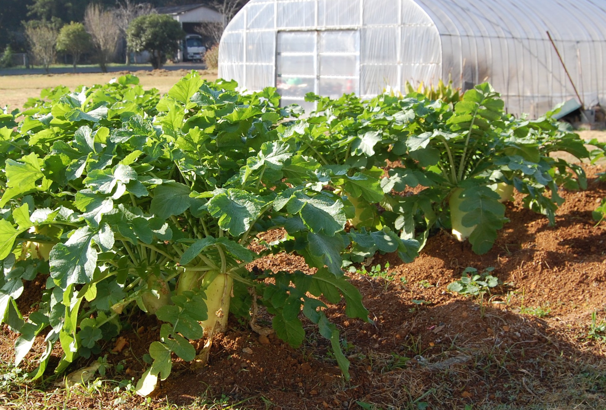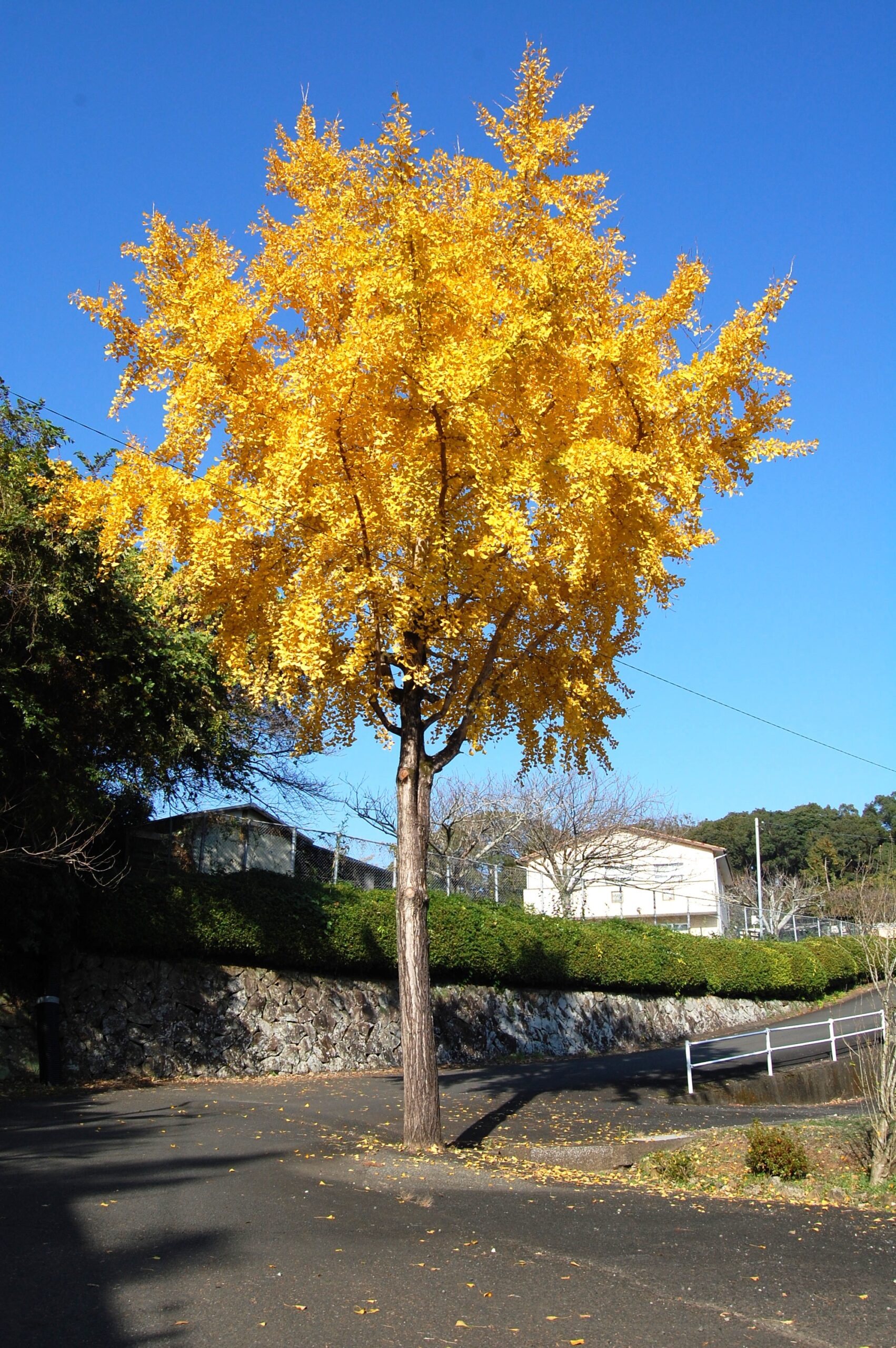 一方で、中庭の隅にある銀杏は今が見ごろ。朝の陽を浴びて輝いています。畑に目を移すと、大きなダイコンが何本もにょきにょきと力強く姿を見せていました。次の調理実習で何の料理になるでしょうか。おでんかな。