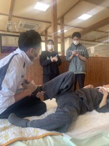 午後からは、井上理学療法士による療育運動に参加し、実際の支援場面を通して現場での関わり方や支援の工夫について理解を深めていただきました。