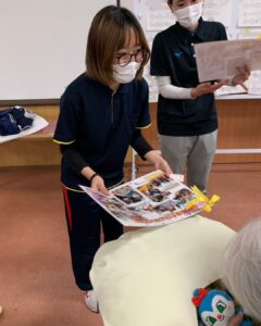 この日のために、学生の皆さんは前日から別室で準備を重ね、「どうすれば利用者様に楽しんでいただけるか」を真剣に話し合いながら制作に取り組んでいました。その熱意が伝わる、心温まるひとときとなりました。