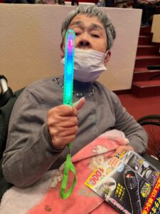 テレビで見ていた憧れの歌手と実際に触れ合えて、利用者様の笑顔は最高に輝いていました。