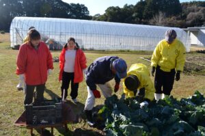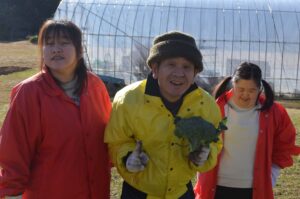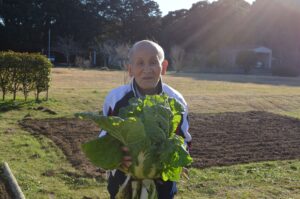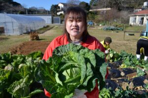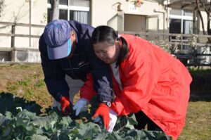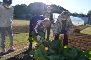 1月6日、佐世保祐生園は、池田生活副主任、村田支援員、農業工作班の利用者の皆さんとともに、昨年植えた冬野菜の収穫を行いました。
