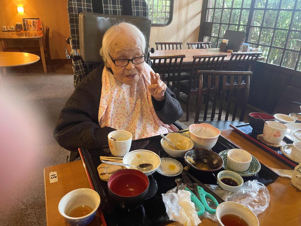 ご本人様に長生きの秘訣をお聞きすると、「やっぱり、美味しいものを食べることたい」と穏やかに話され、「また来年も、ここで美味しいものを食べたいですね」と、次の楽しみへの言葉も聞かれました。