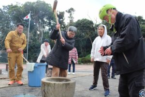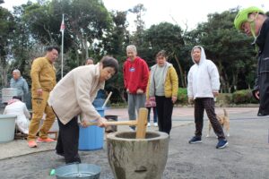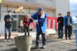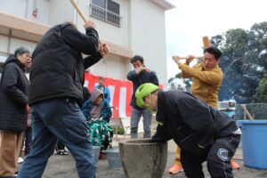 年末恒例の餅つきを12月26日に利用者様と一緒に行いました。あつあつのもち米を臼に入れると、湯気がたちのぼり職員の杵を持つ力も入り餅つきが始まりました‼️😊