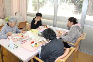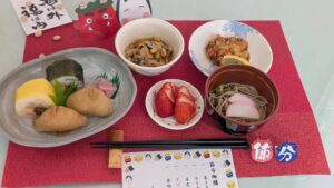 昼食は、厨房職員の皆さんが利用者様の一年の幸福と無病息災の願いを込めて行事食を提供しました。利用者様も大変喜んで食べられていました。今年もたくさんの福が舞い込んで来ますように✌️
