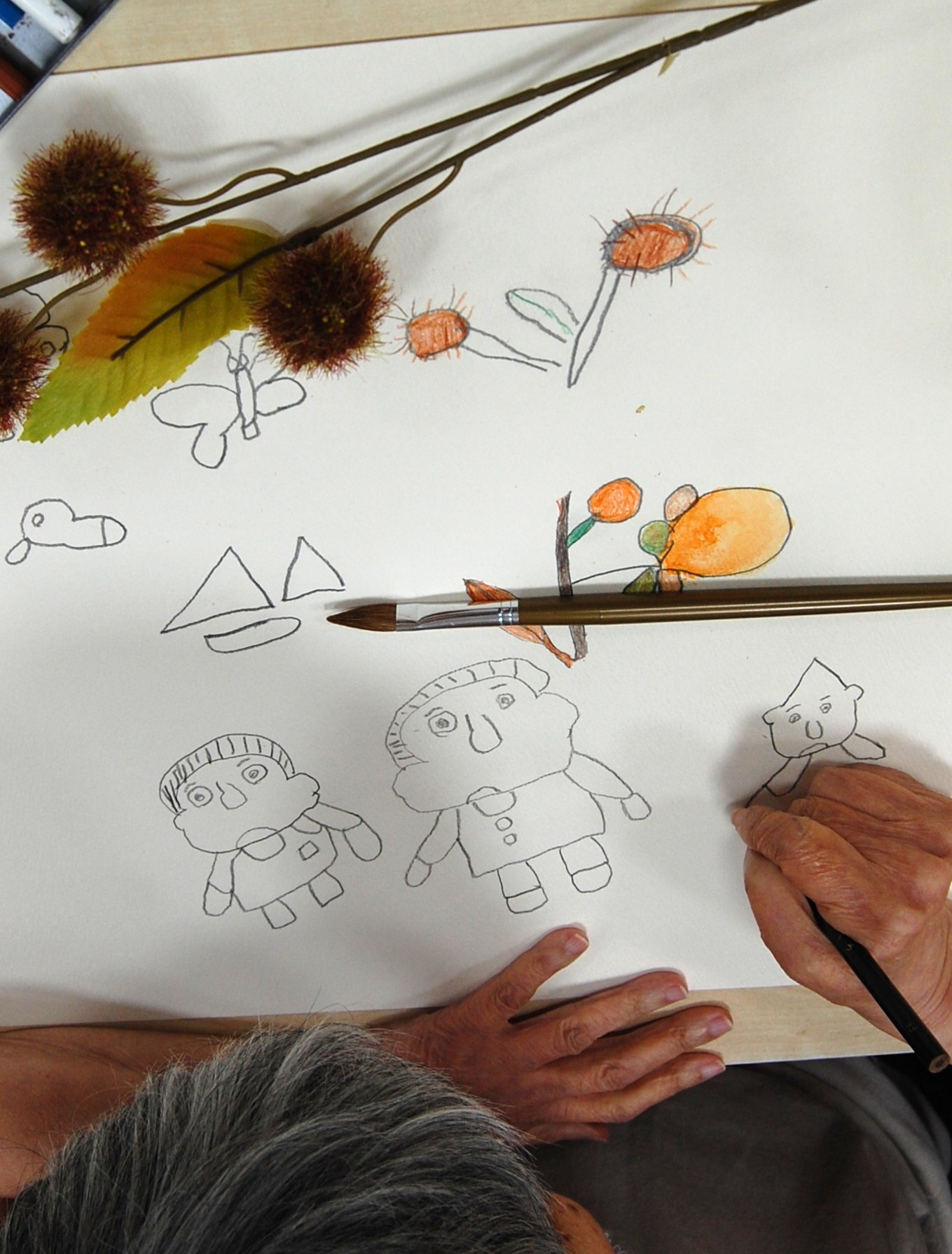 描き方に迷うと「先生!」と手を挙げる方がいれば、先生に頼らずに黙々と筆を走らせる方もいて、それぞれのスタイルができつつあります。