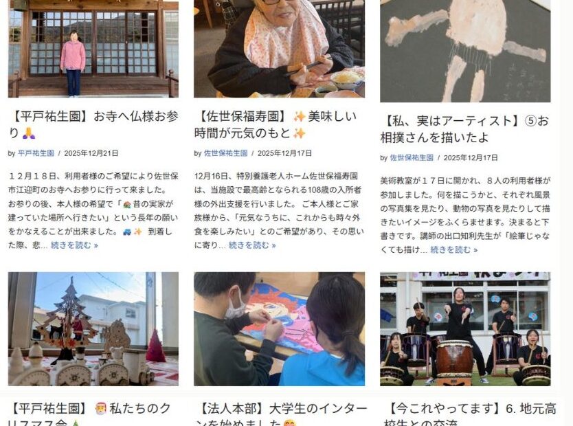 佐世保祐生園は、12月26日に毎年恒例の餅つき大会を開催しました。 当日は、通所利用者の皆さんと入所男性利用者の皆さん、そして職員が集まり、賑やかな餅つきとなりました。参加者全員が佐世保祐生園の法被を着て、元気な掛け声… 続きを読む »【佐世保祐生園】🎍毎年恒例の餅つき🎍