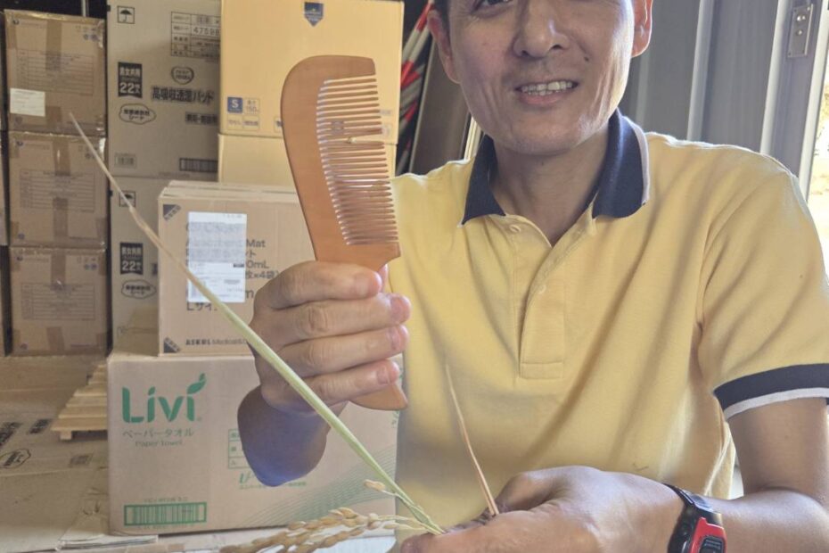 10月14日に刈り取った稲を天日干しし、10月21日に脱穀を行いました。 当園には脱穀機がないため、池田副主任と農業工作班メンバー、そして利用者の皆さんで櫛を使って手作業で脱穀しました。 稲の穂を一束ずつ櫛に通しなが… 続きを読む »【佐世保祐生園】🌾 櫛を使って脱穀🌾