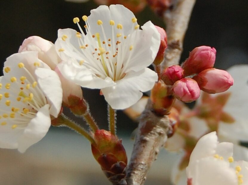 畑のそばにある桜の木に花が咲きました。人の背丈ほどの小さな木ですが、早咲きの品種のため、ちょっと早く開きました。今は6分咲きほどです。 みつばちもさっそく飛んできて、花と花の間を飛び回っています。薄紅色のつぼみがまだたく… 続きを読む »【佐世保祐生園】桜が咲きました🌸