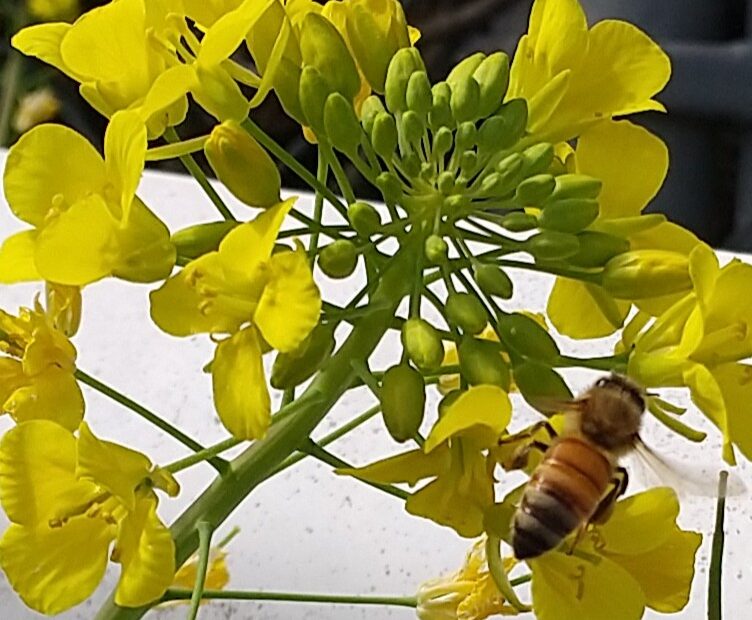針尾の農道に今、菜の花が咲いています。側溝や土手で、鮮やかな黄色が風に揺れています。 近づくと、「ブーン、ブーン」という音があちこちから聞こえました。無数のミツバチが菜の花を飛び回っては働いているのです。花から花へと次々… 続きを読む »【針尾あれこれ】菜の花とミツバチ🐝